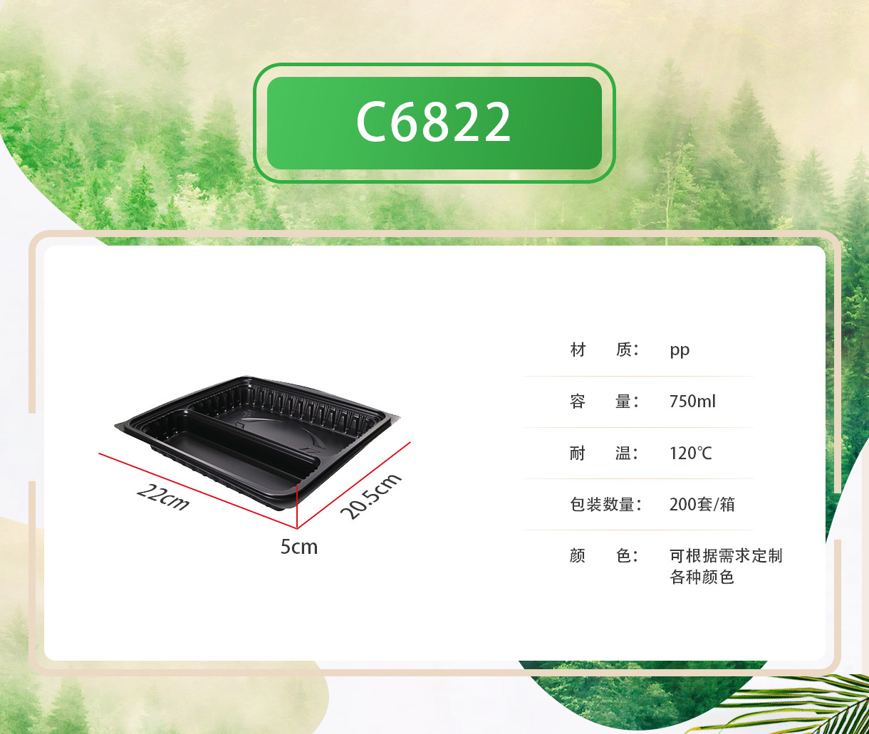 BOPS蓋黑色方形兩格快餐盒